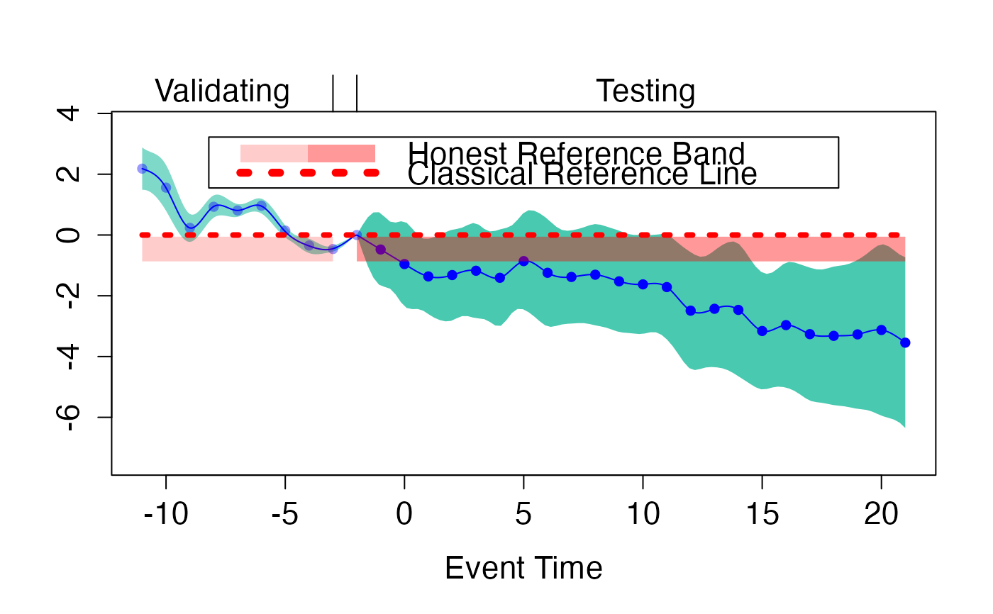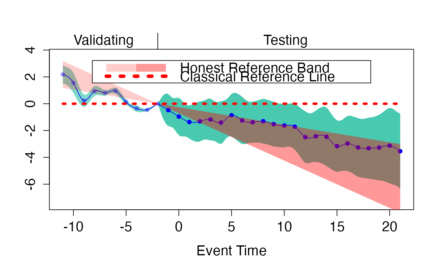 plot.fdid_scb.RdThis function is an S3 method for plot, specifically designed for objects of class "fdid_scb". It plots the simultaneous confidence bands together with honest reference band for performing honest causal inference.
